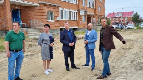 Сначала они посетили пустырь на ул. Промышленной, где недавно начались подготовительные работы по благоустройству общественного пространства (размером более 1000 кв. м) между многоквартирными домами на сумму чуть более 8,6 млн рублей. Как отметил Сергей Пьянков, здесь пройдут мероприятия по устройству пешеходной зоны из тротуарной плитки, детской и спортивной зоны, установке наружного освещения и малых архитектурных форм. «Подрядчик был определён ещё в прошлом году, мы своевременно заключили контракт, сейчас работы начаты», — подчеркнул он. Первый этап благоустройства завершится к середине сентября.